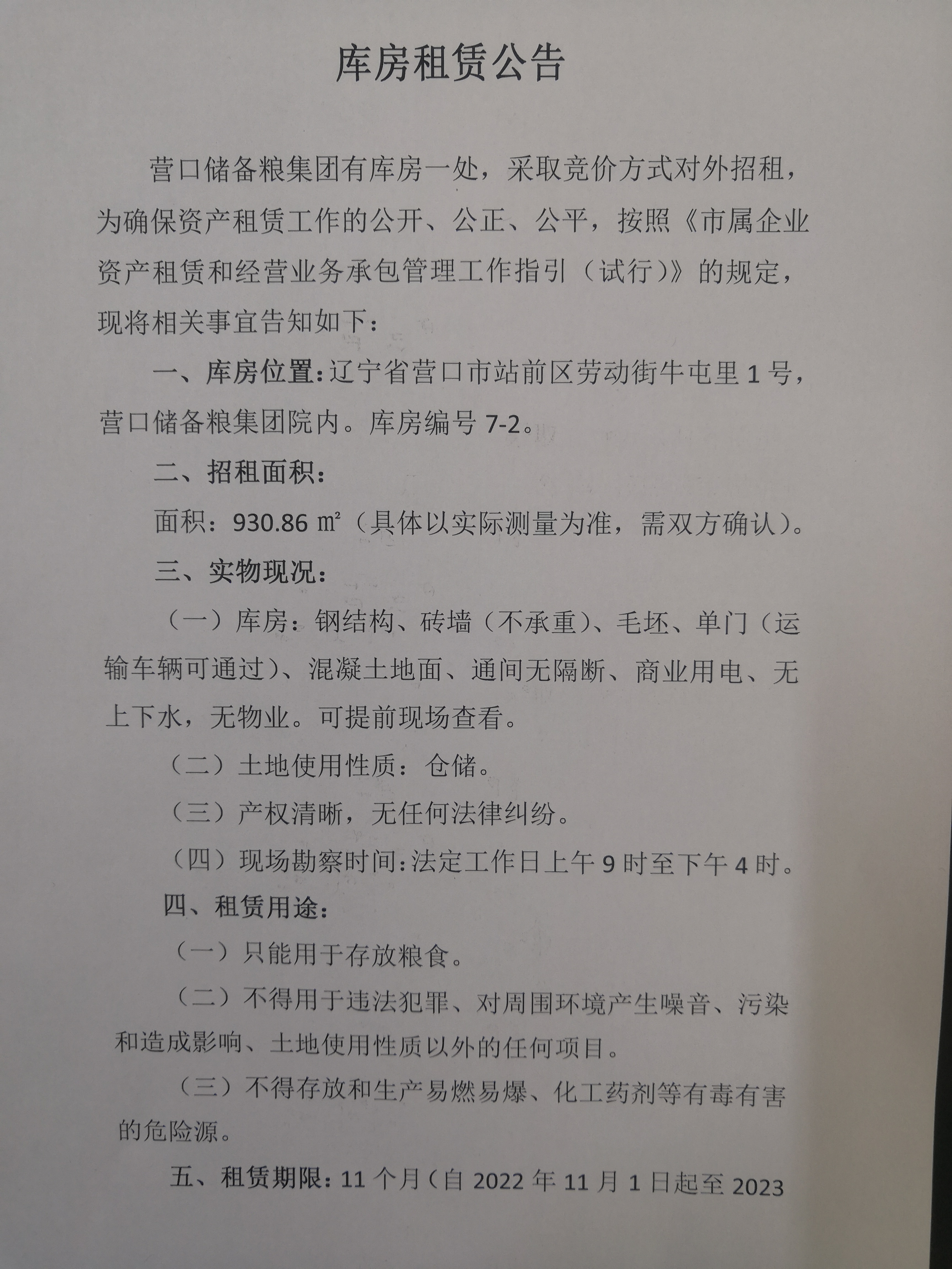 2022年11月23日辽宁省营口粮食储备有限公司区级储备大豆油网上专场竞价采购交易会公告
