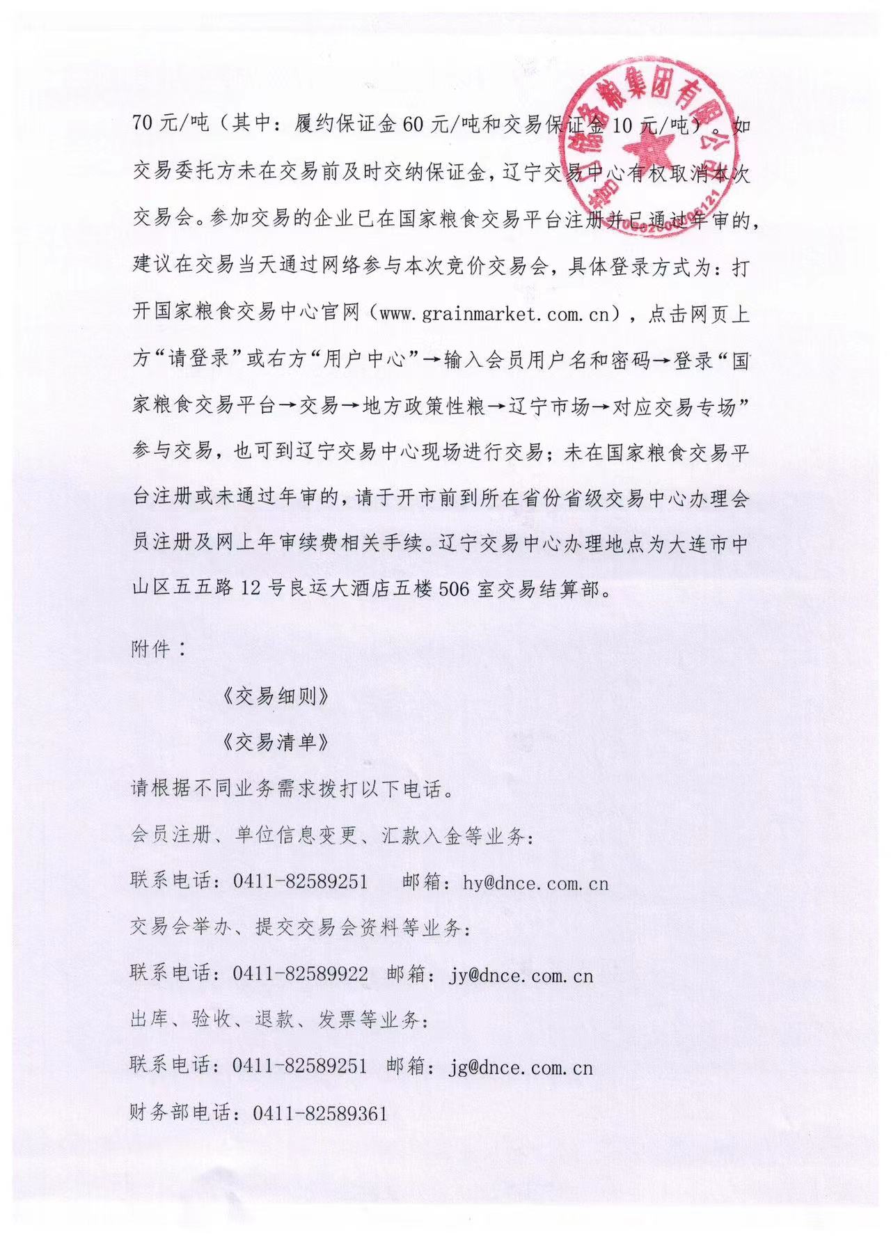 2023年8月10日营口储备粮集团有限公司市级储备稻谷购销双向网上专场竞价交易会公告