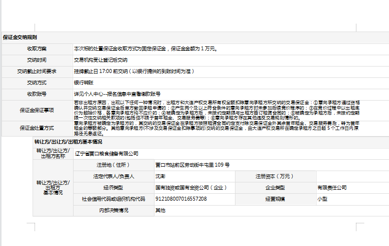 辽宁省营口粮食储备有限公司1处房地产出租项目